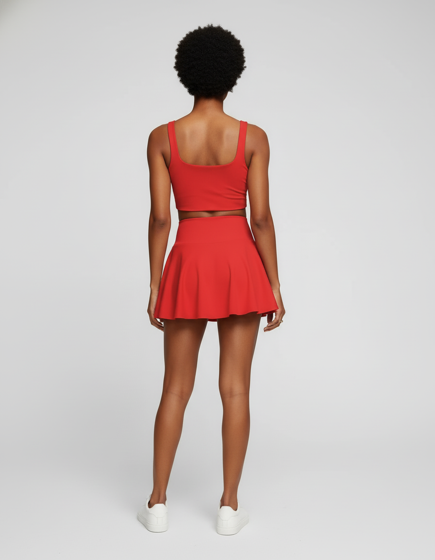 Ensemble Jupe Patineuse Rouge Taille Haute