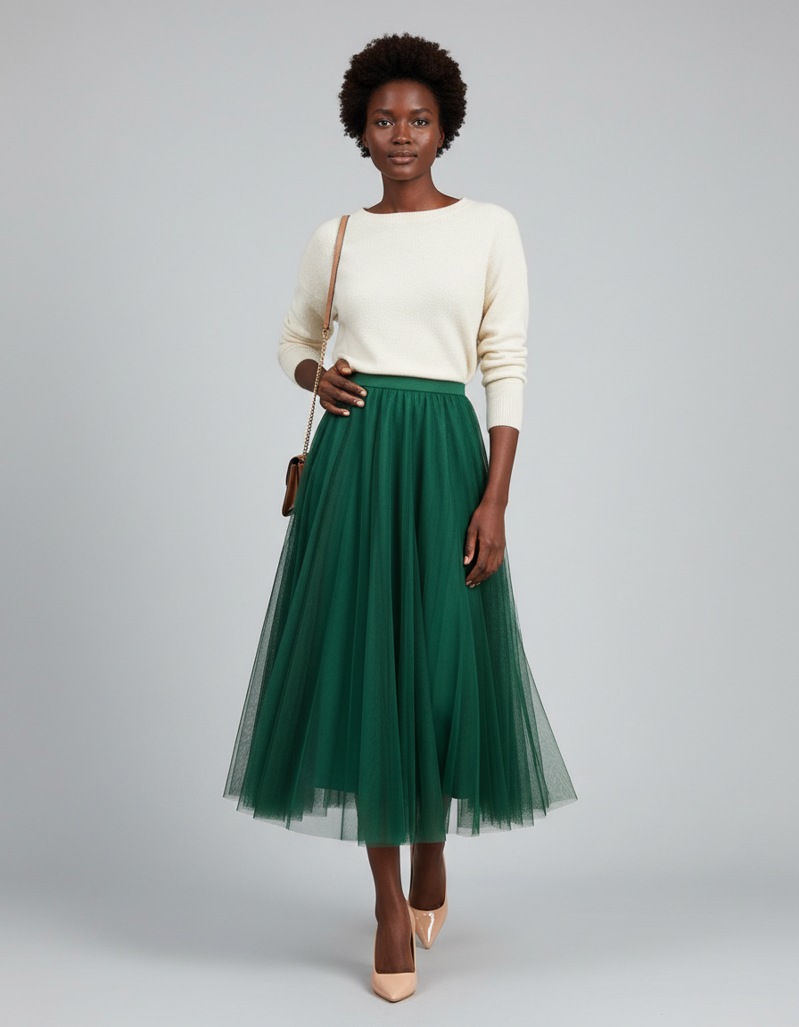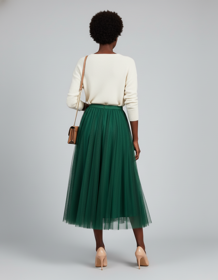 Élégance Aérienne : La Jupe Patineuse Bouffante en Tulle Vert