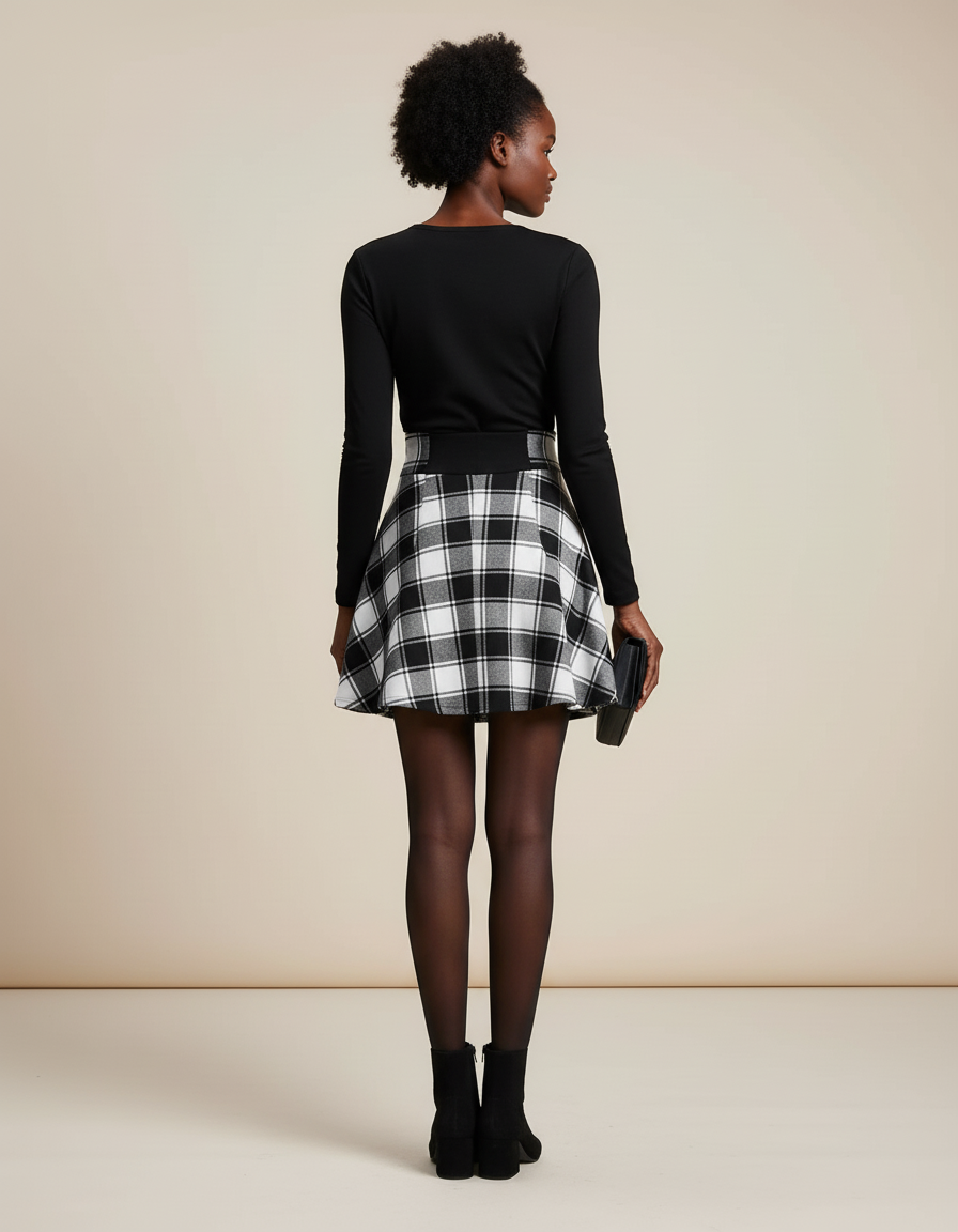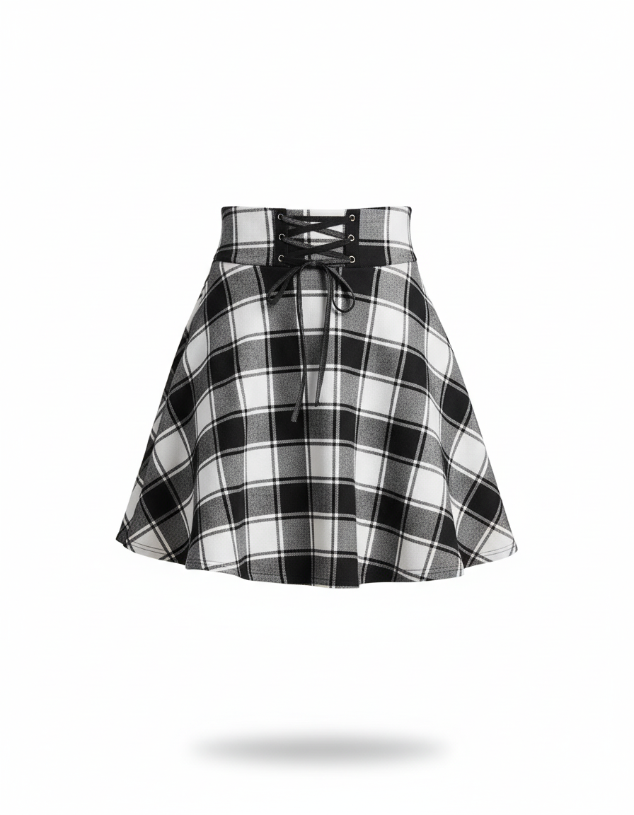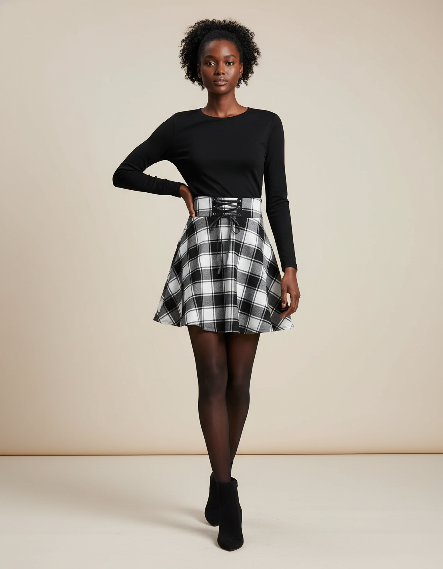 Jupe Patineuse À Carreaux Taille Corset Chic : L'Art de la Silhouette Parfaite
