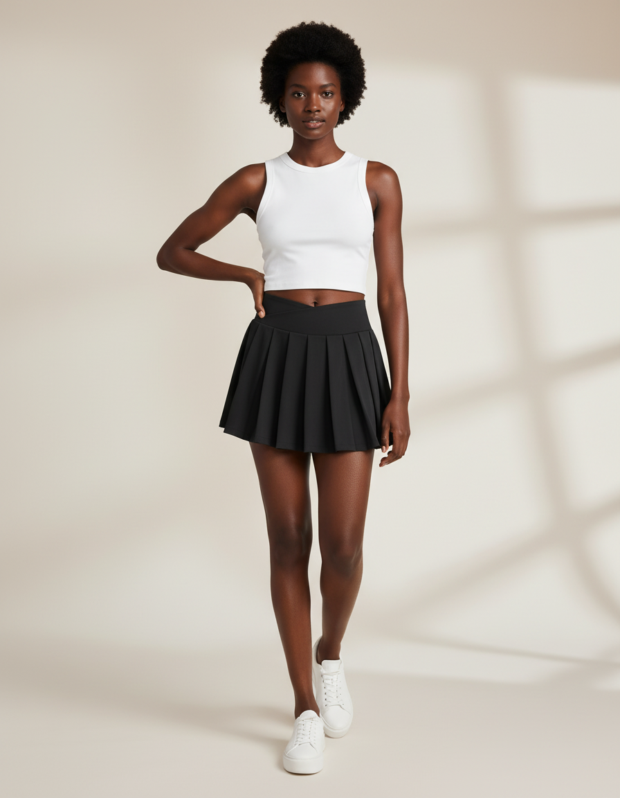 Conçue pour une liberté de mouvement absolue, cette jupe vous accompagne sans contrainte, quel que soit votre programme. Son tissu polyester haut de gamme assure un tombé impeccable et une tenue parfaite, qui flatte la silhouette sans jamais entraver vos pas. Légère et fluide, elle garantit un confort exceptionnel du matin au soir, vous permettant de rester élégante et à l'aise en toute circonstance. Un investissement dans le style et le bien-être, pour une allure toujours maîtrisée et une confiance inébranlable.