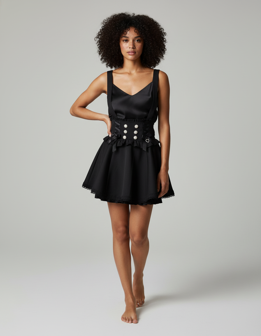 Adoptez un look sophistiqué et audacieux avec notre Jupe Patineuse Avec Bretelle, parfaite pour toutes les occasions.