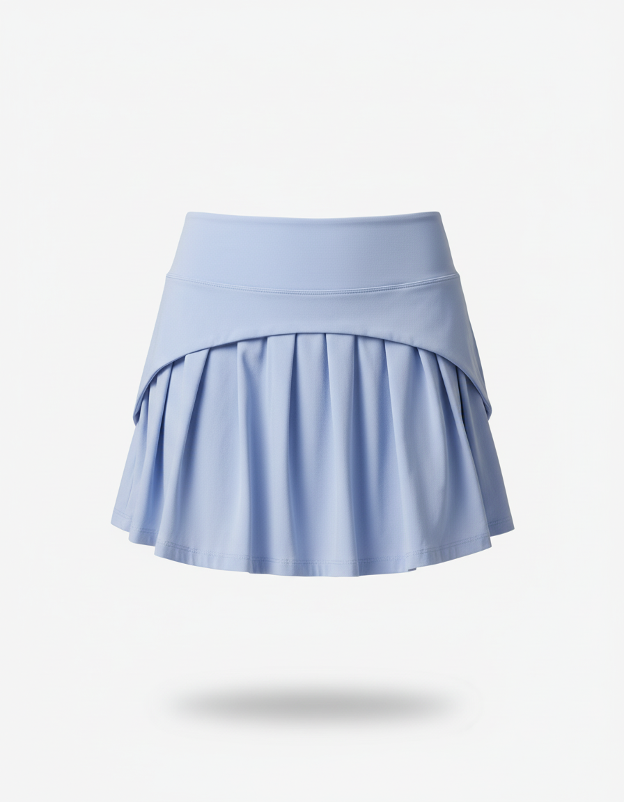 Adoptez un look frais et dynamique avec notre jupe patineuse plissée bleu ciel, parfaite pour toutes vos activités.