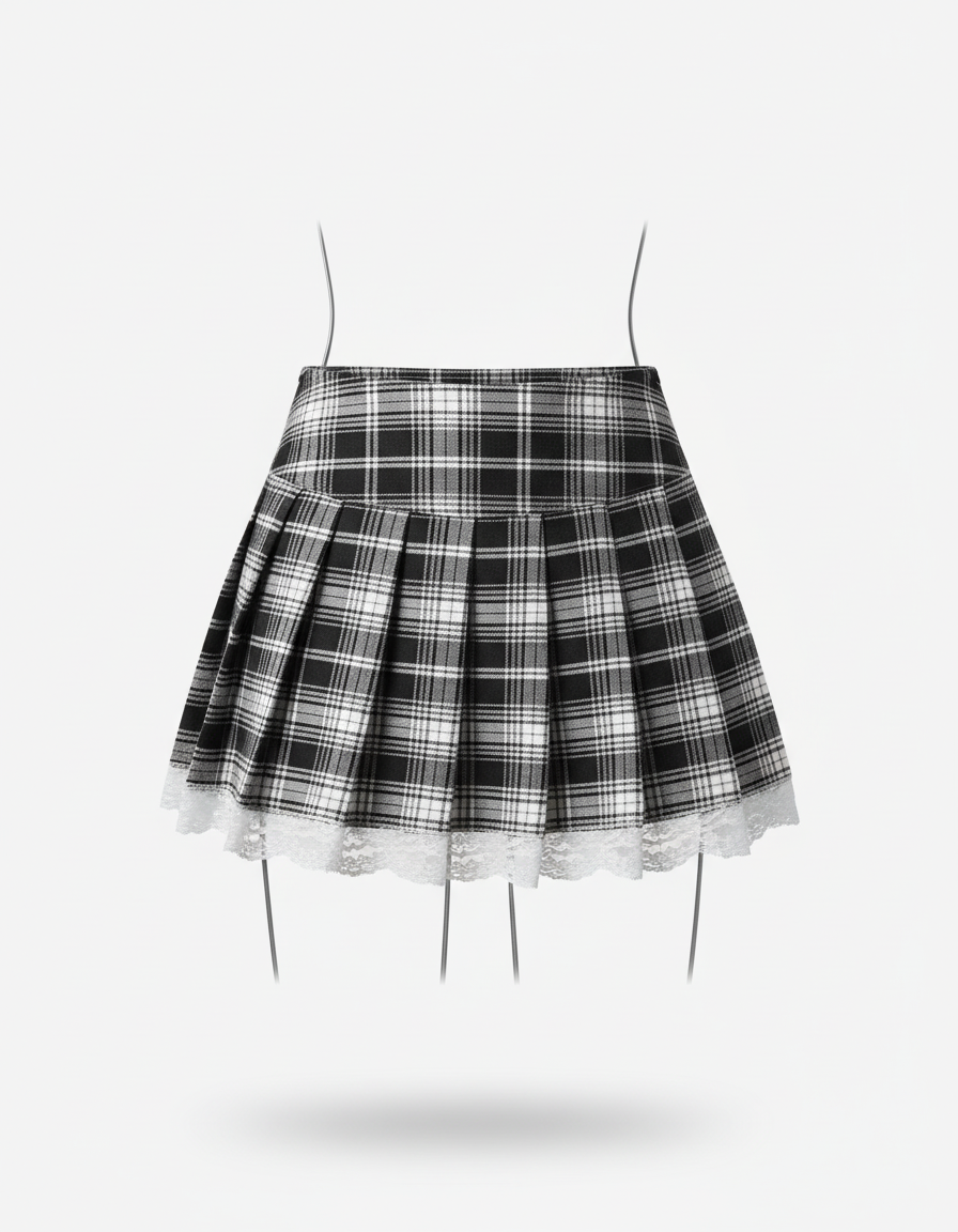 Jupe Patineuse Carreaux Dentelle Plissée Romantique : L'Élégance Audacieuse