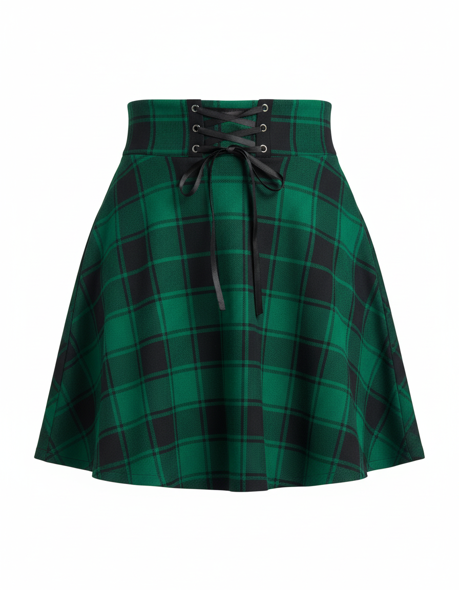 Affirmez Votre Style : La Jupe Patineuse Carreaux Lacée Fluide