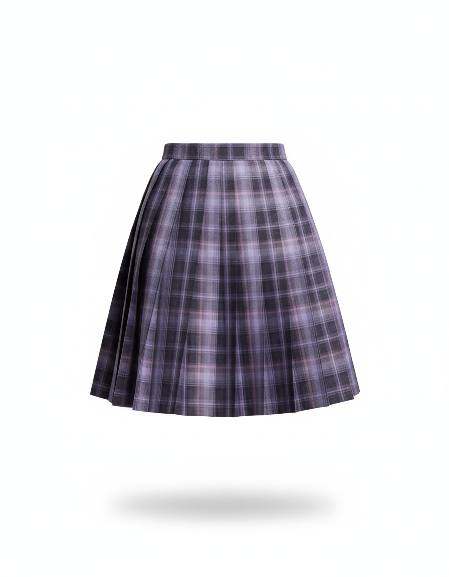 Cette jupe patineuse carreaux violet preppy est adaptée pour un port quotidien. Elle peut être intégrée dans des tenues décontractées ou des ensembles d'inspiration scolaire.