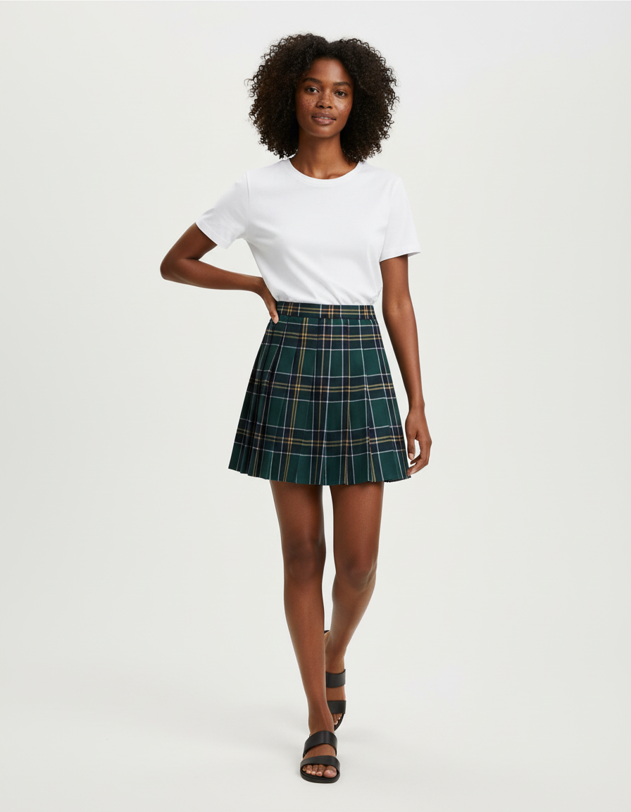 Jupe Patineuse Écossaise Verte Plissée : L'Affirmation d'un Style Libre et Sophistiqué