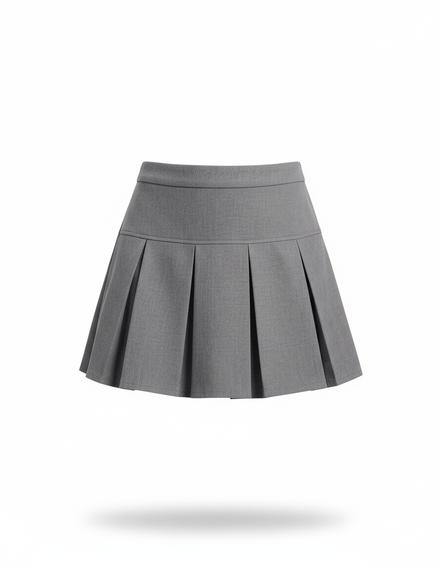 Jupe Patineuse Grise Plissée Mini Chic Discrète