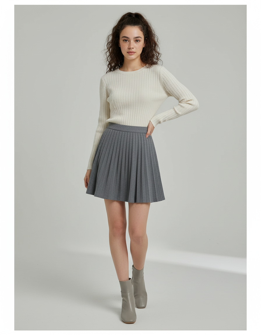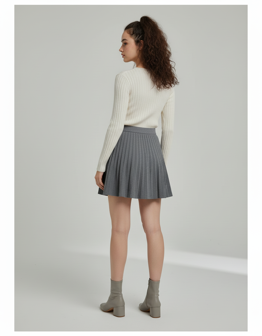 Jupe Patineuse Grise Plissée Décontractée – Caractéristiques