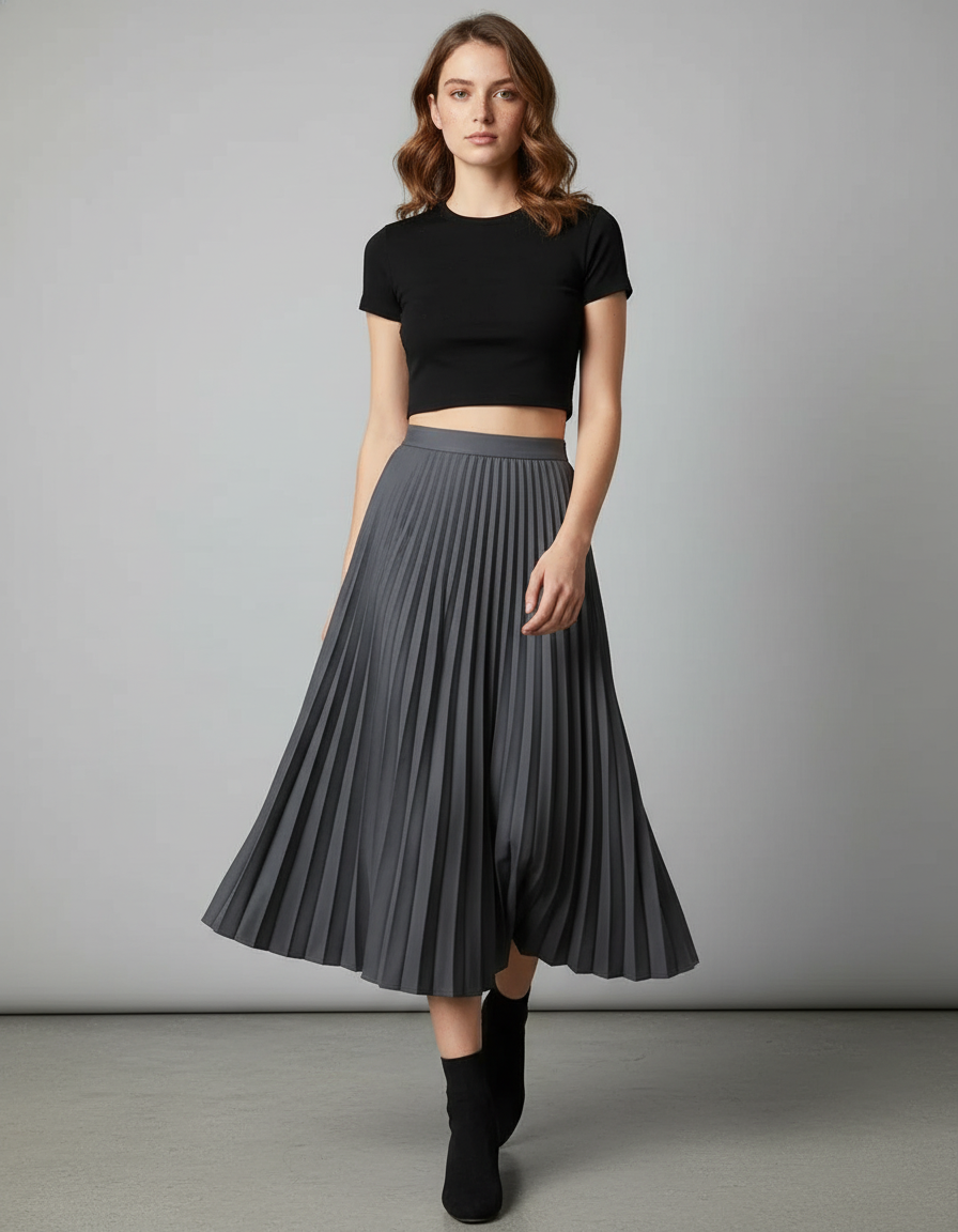 L'Art de la Polyvalence : La Jupe Patineuse Grise Plissée