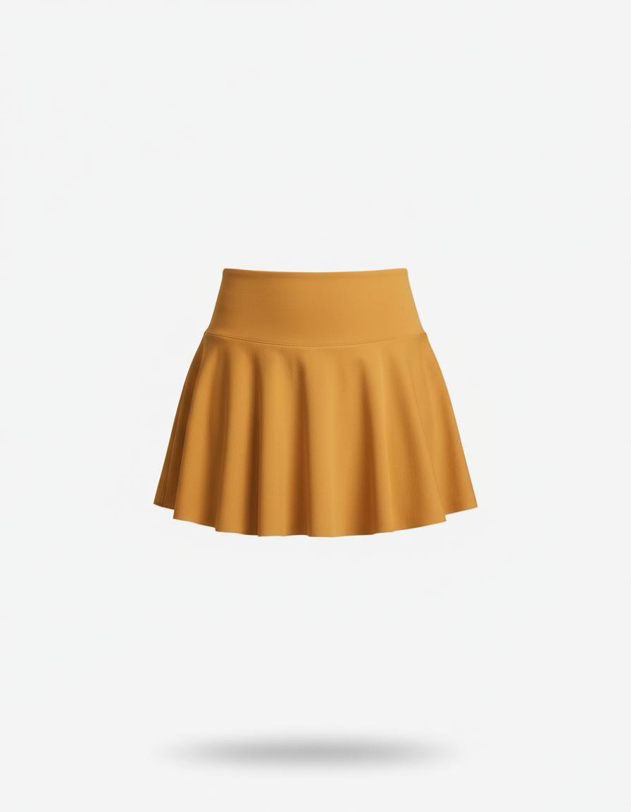 Adoptez un look frais et dynamique avec notre jupe patineuse jaune moutarde, parfaite pour toutes vos activités.