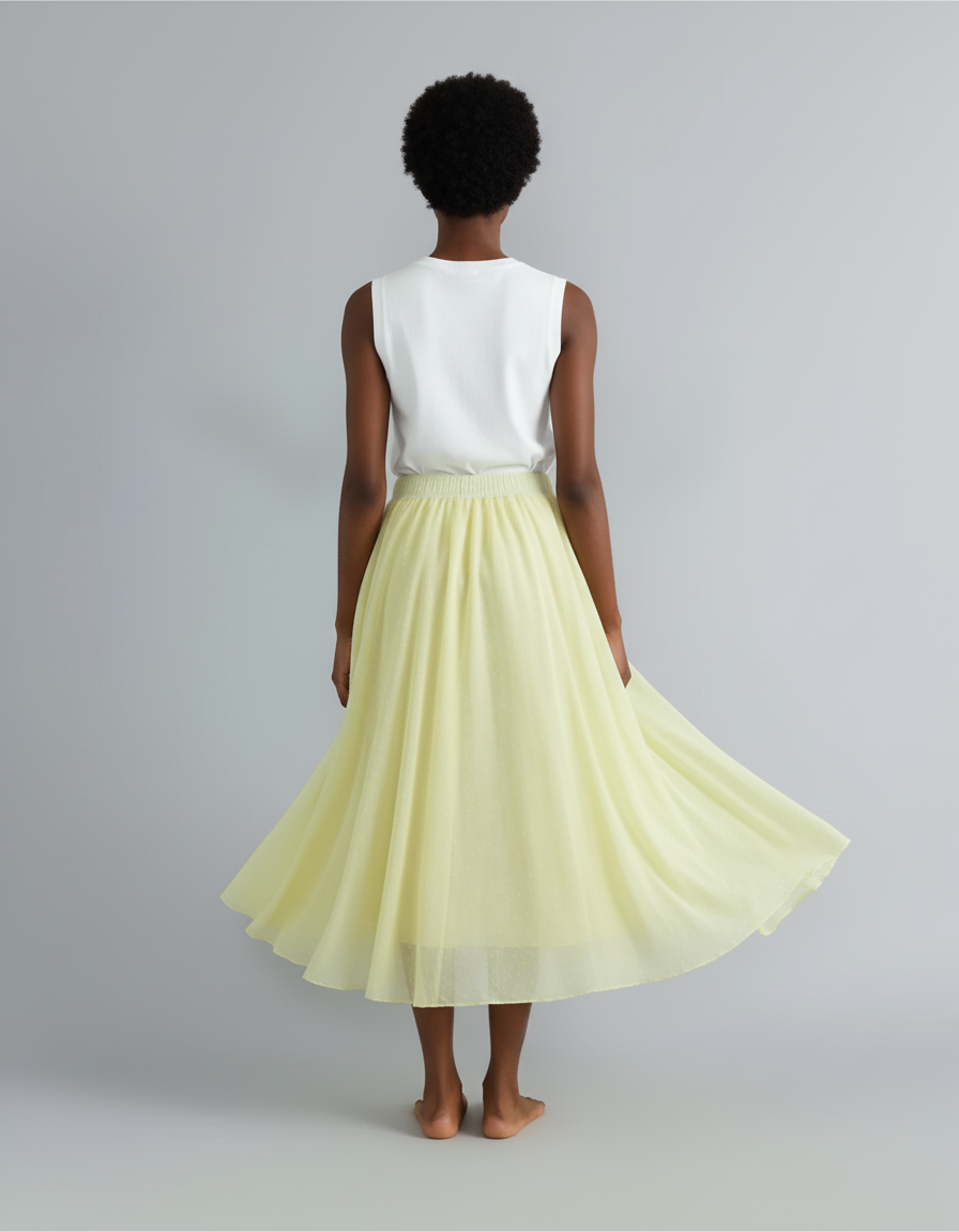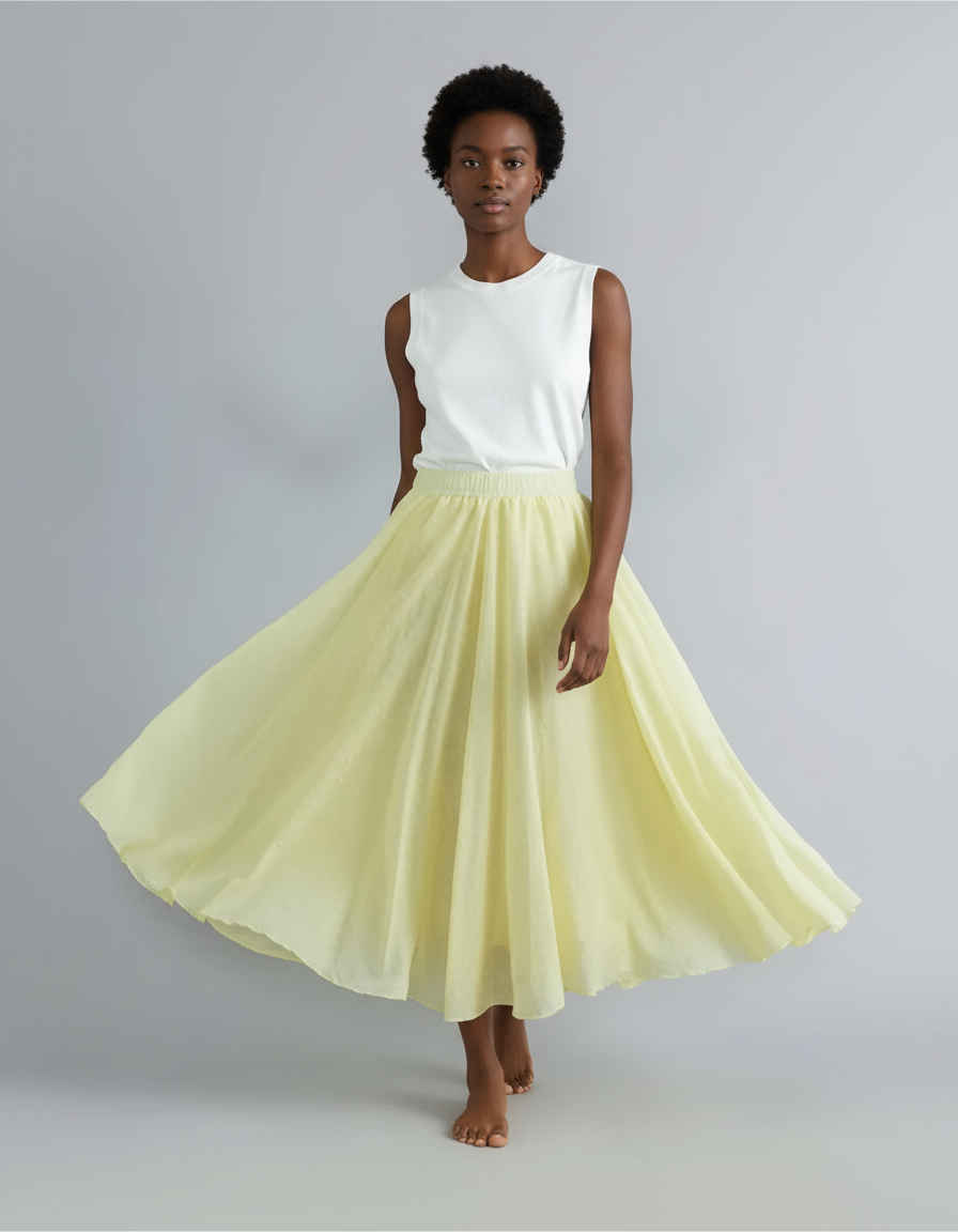 Jupe Patineuse Longue Femme Évasée Jaune Clair