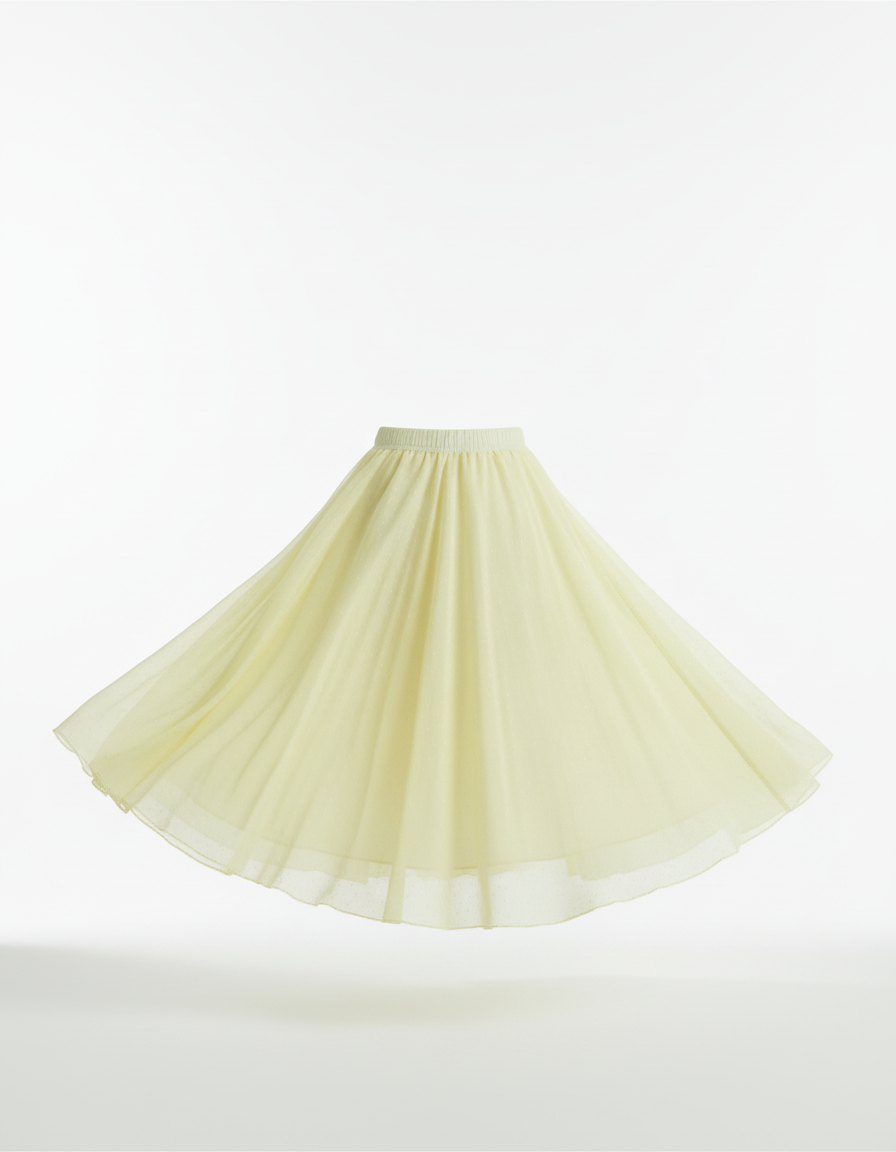 Confectionnée dans une mousseline aérienne de qualité supérieure, cette jupe se distingue par son tombé fluide et sa texture subtilement scintillante. Sa coupe patineuse longue offre une amplitude majestueuse sans jamais alourdir, créant un mouvement hypnotisant et une silhouette flatteuse. L'élastique délicat à la taille assure un ajustement parfait et un confort absolu, faisant de cette jupe un incontournable versatile. Que ce soit pour un événement spécial ou pour rehausser une tenue décontractée, elle est la quintessence du luxe discret et de l'élégance intemporelle.
