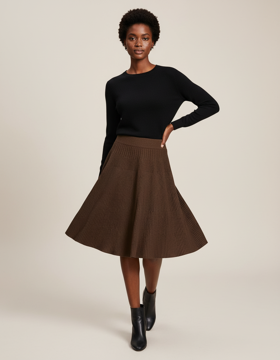 Jupe Patineuse Maille Marron : L'Élégance Fluide pour la Femme Moderne