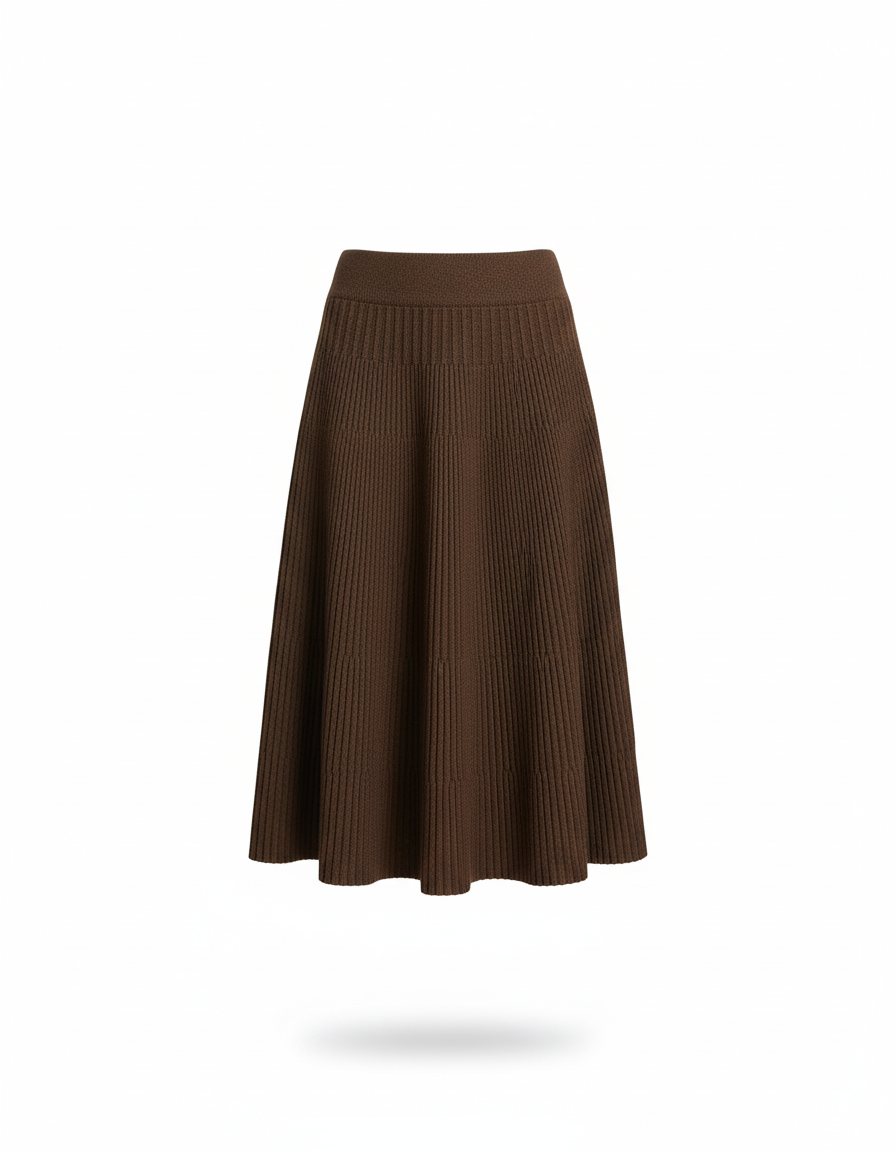 Jupe Patineuse Maille Marron Côtelée