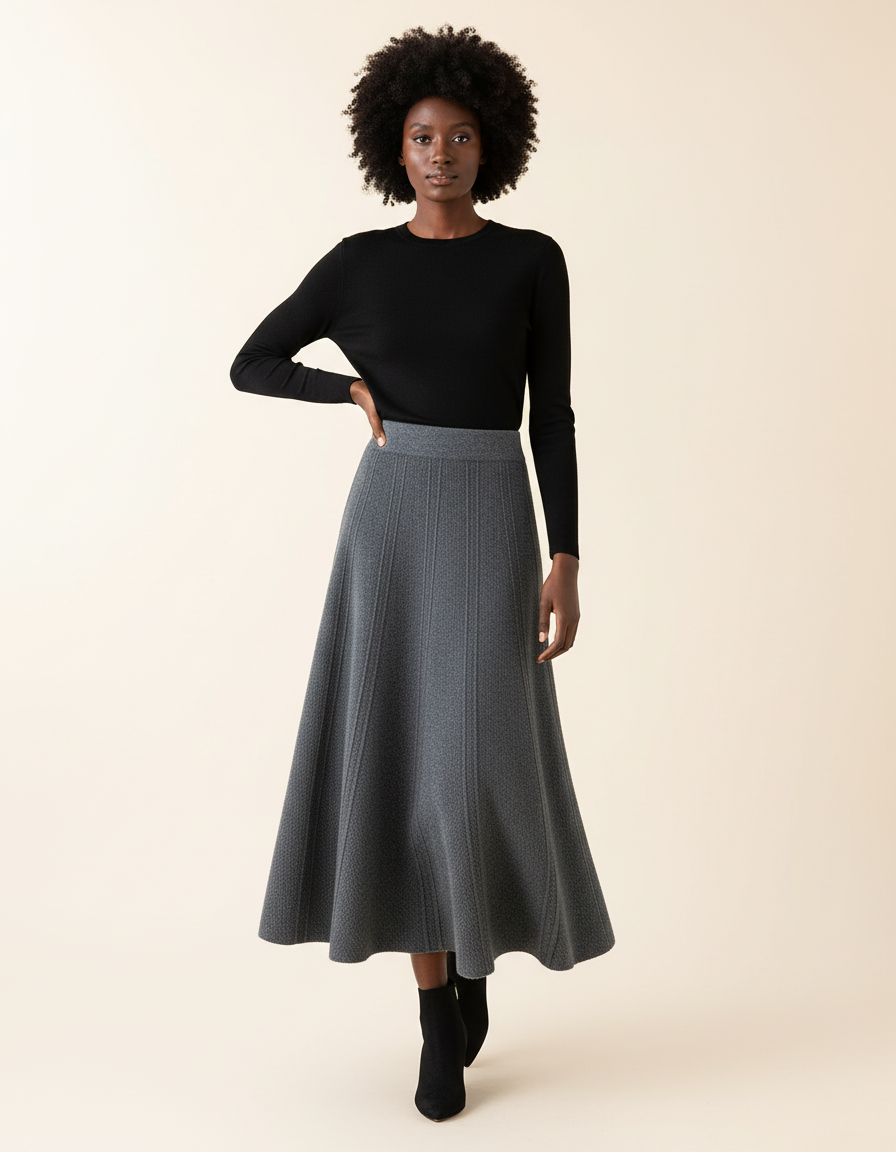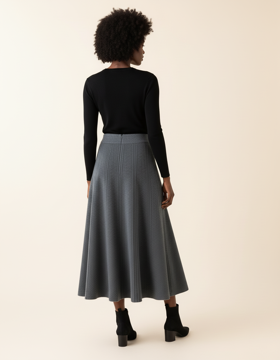 Jupe Patineuse Midi Grise : Le Luxe du Confort au Quotidien