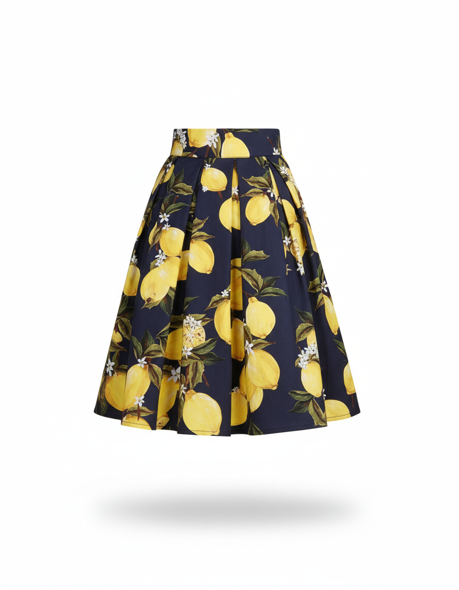 Usage de la Jupe Patineuse Motif Citron Plissée Chic