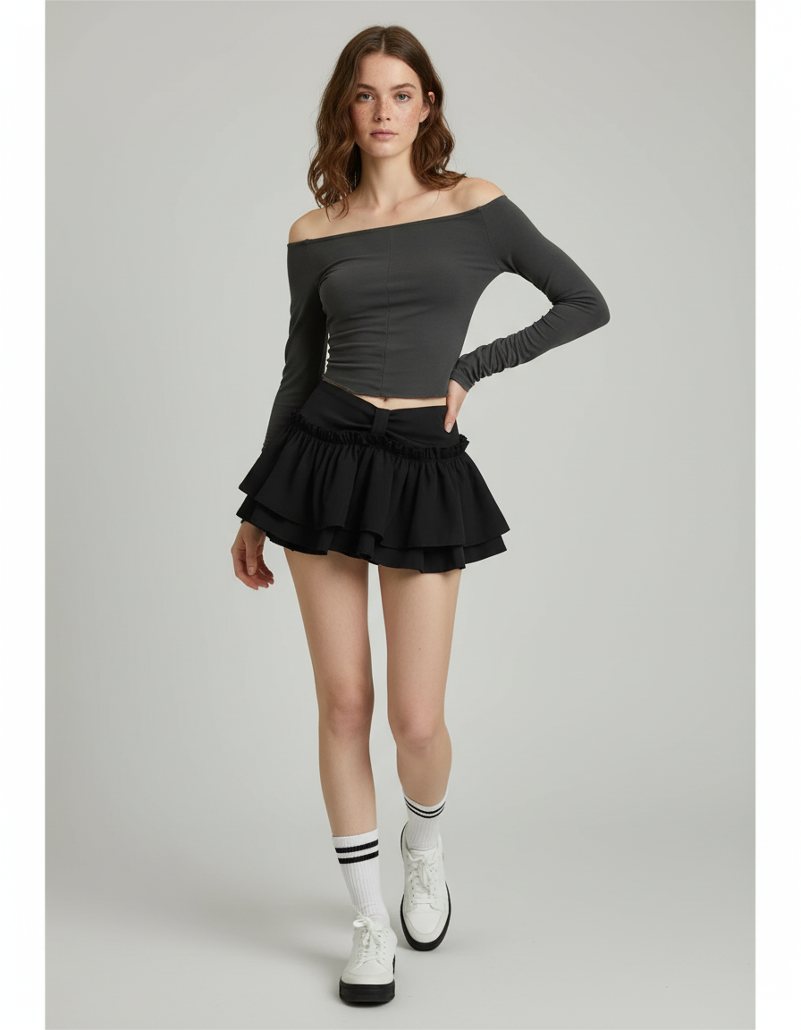 Usage de la Jupe Patineuse Noire À Volants Chic