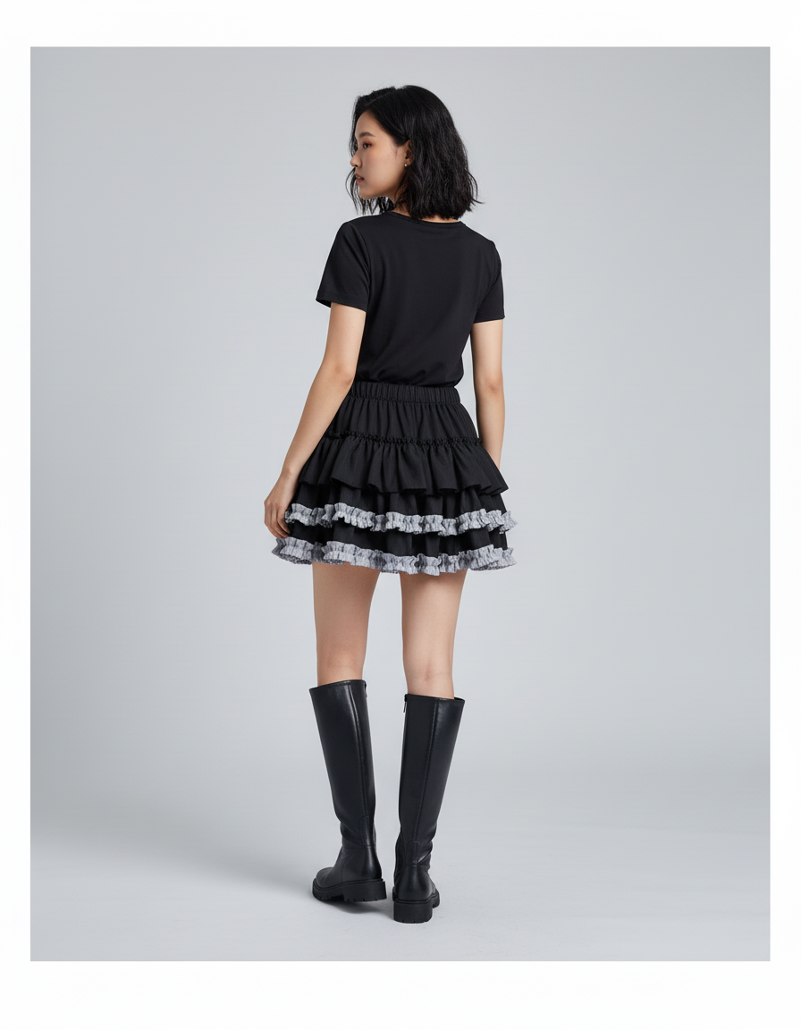 Pourquoi choisir la Jupe Patineuse Noire À Volants Décontractée