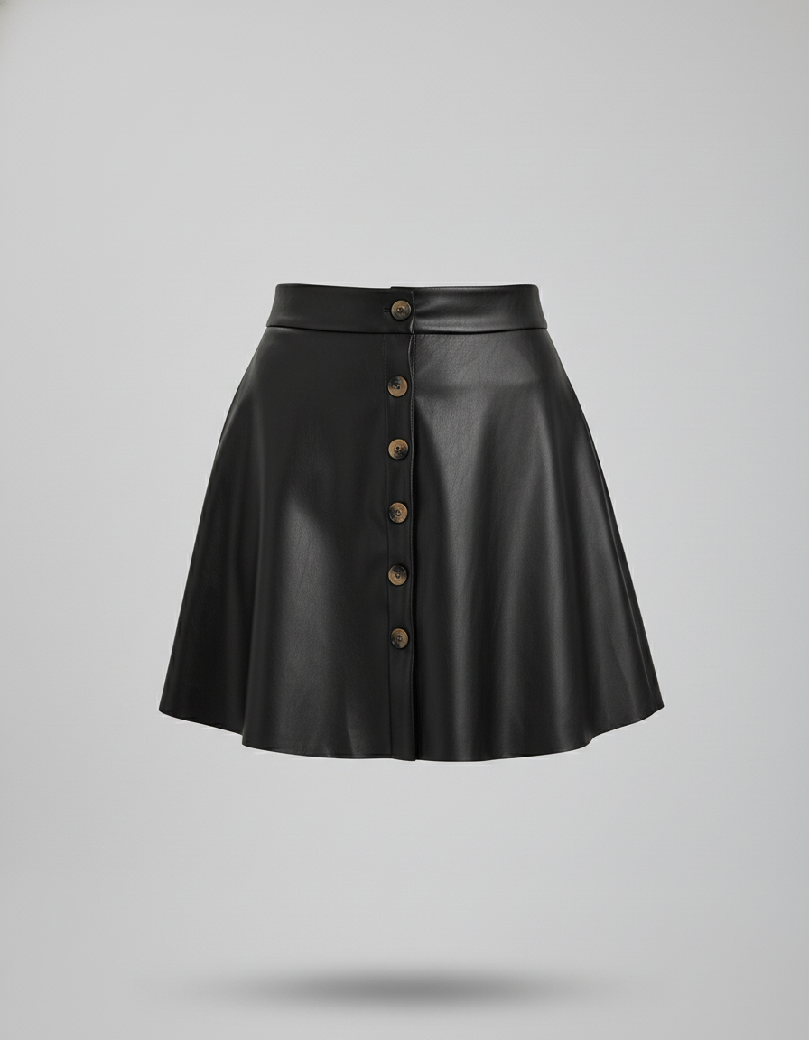 Jupe Patineuse Noire Cuir - Style Boutonné