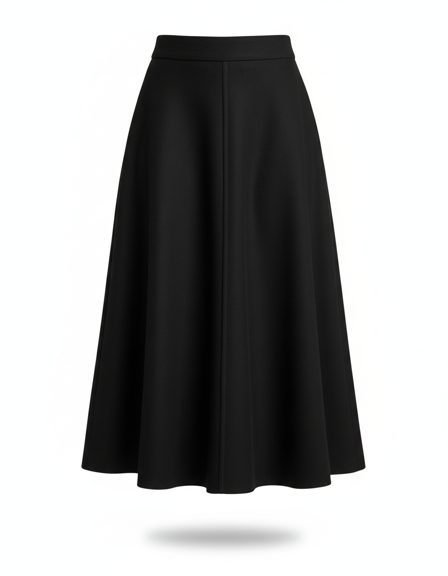 Jupe Patineuse Noire Femme Évasée Mi-Longue