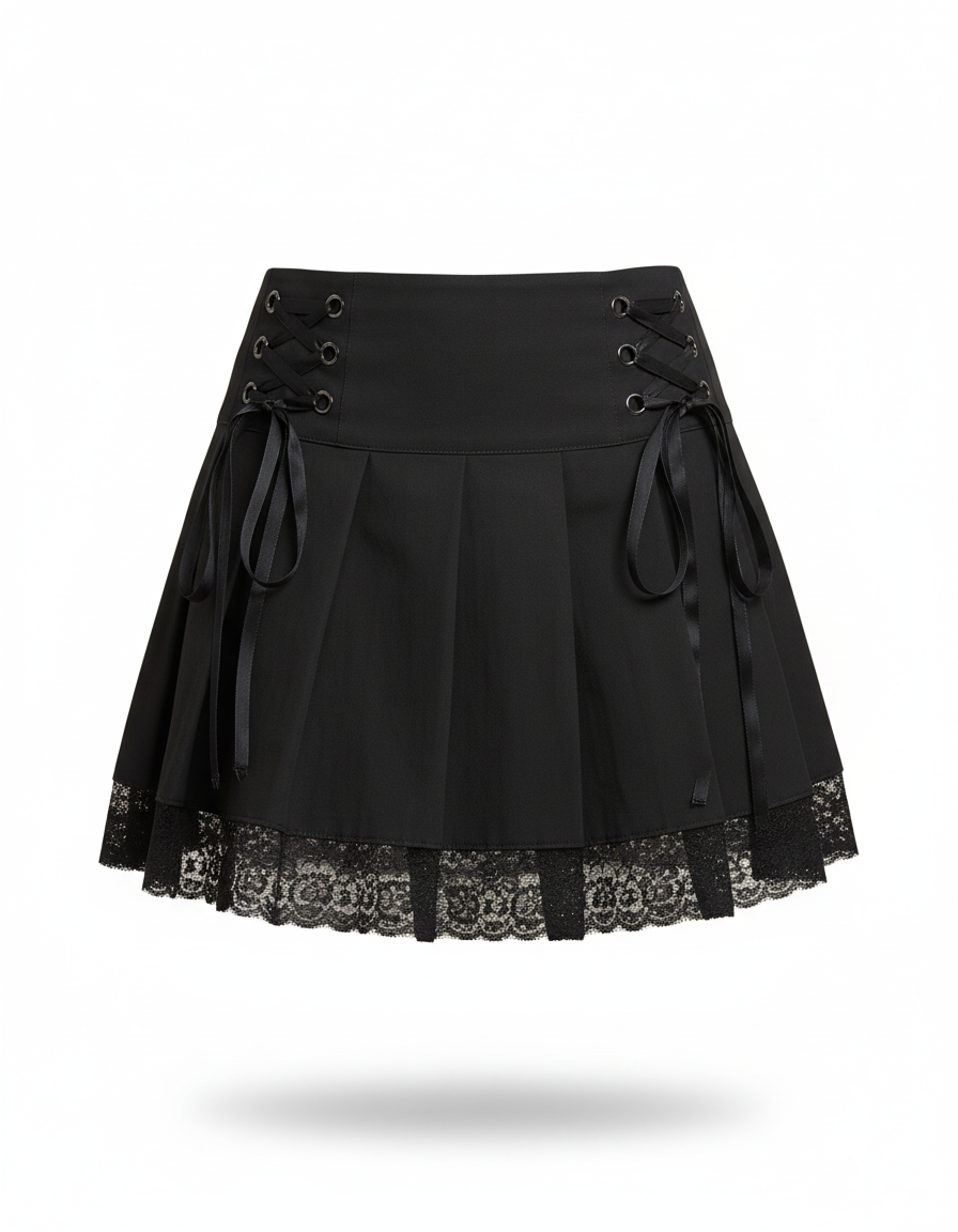 Usage de la Jupe Patineuse Noire Laçage Plissée