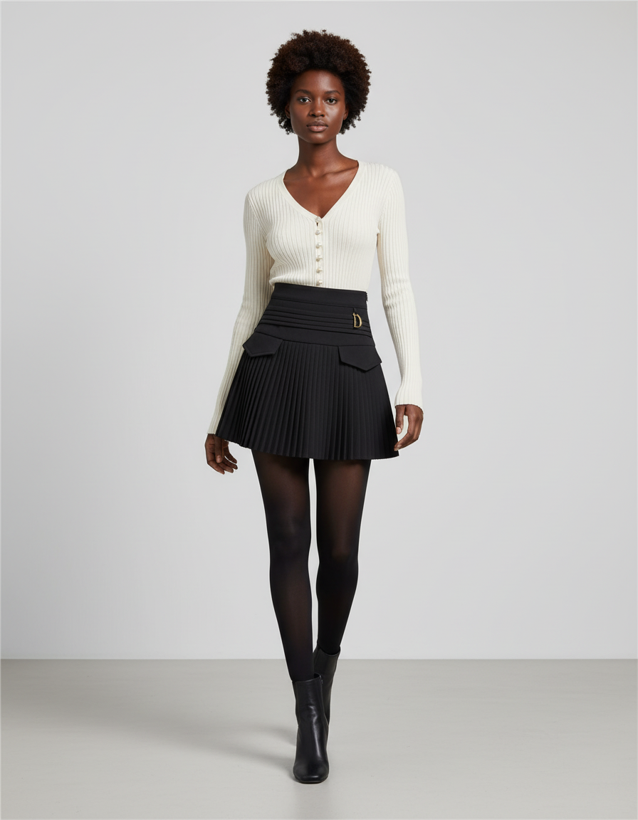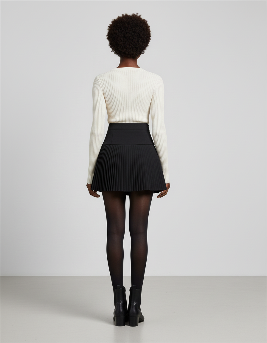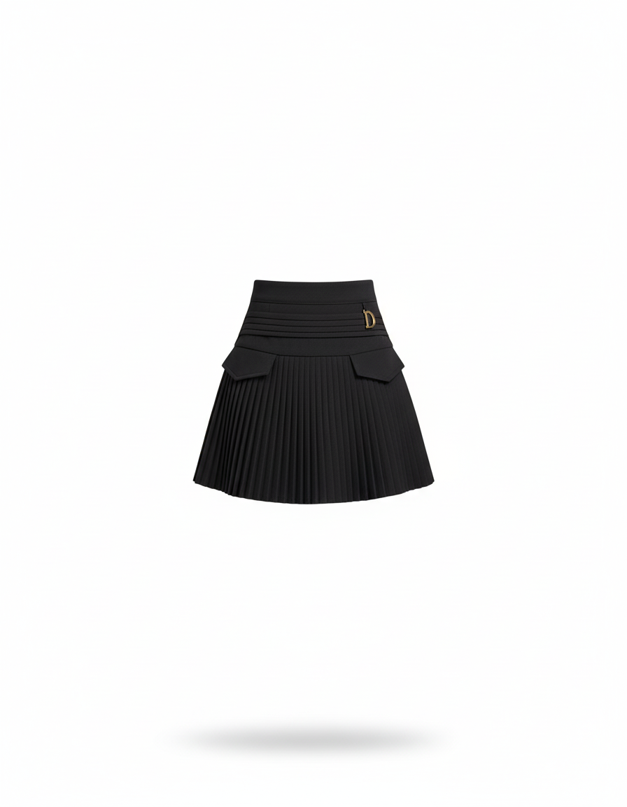Jupe Patineuse Noire Plissée Décontractée Fluide – Design Structuré