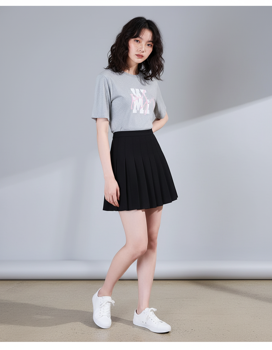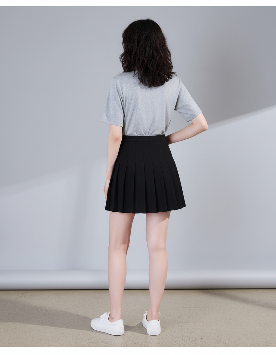 Usage de la Jupe Patineuse Noire Plissée Décontractée Quotidienne