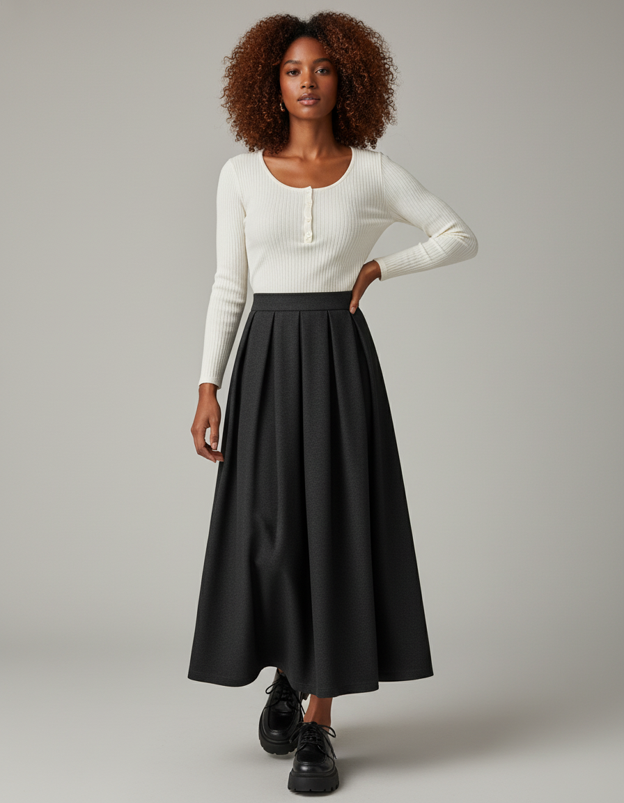 Usage de la Jupe Patineuse Noire Plissée Élégante