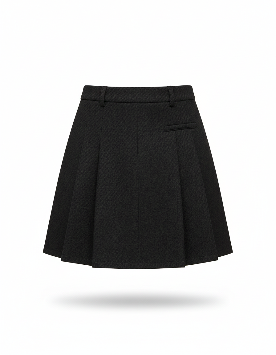 Jupe Patineuse Noire Plissée Élégante Élancée