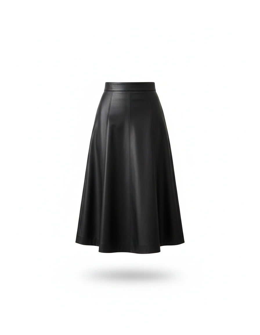 Adoptez un style chic et intemporel avec cette jupe patineuse en simili cuir.