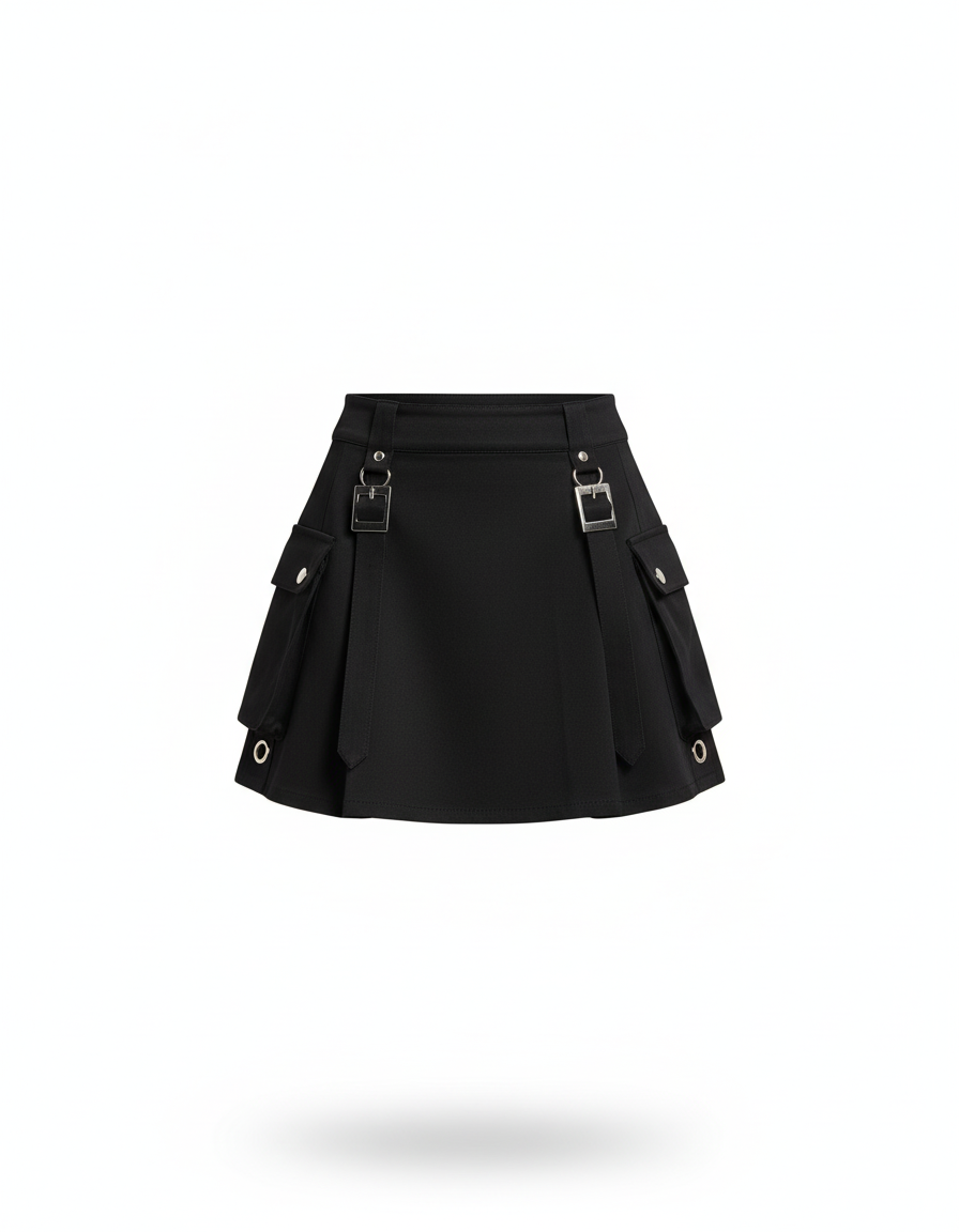 Ce qui la distingue ? Son design utilitaire sophistiqué, agrémenté de détails métalliques distinctifs et de poches fonctionnelles qui fusionnent esthétique punk et praticité urbaine. Confectionnée dans un polyester haut de gamme, elle garantit une tenue impeccable et une résistance durable, faisant d'elle un investissement dans votre style. Loin des conventions, cette jupe est une déclaration de personnalité, un luxe moderne qui célèbre l'individualité et l'élégance non conformiste, vous assurant de capter tous les regards.