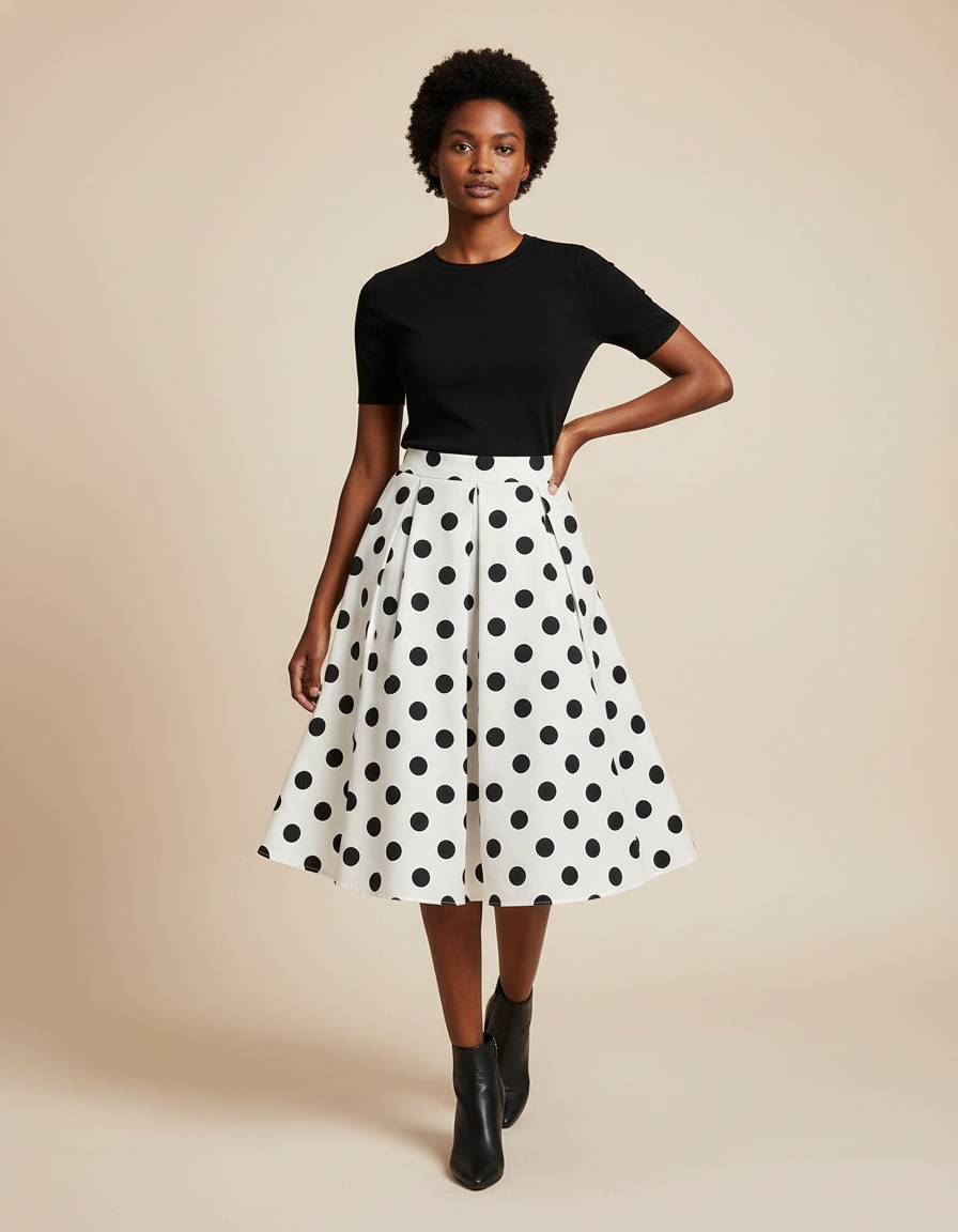 Jupe Patineuse Plissée À Pois : L'Essence du Chic Intemporel