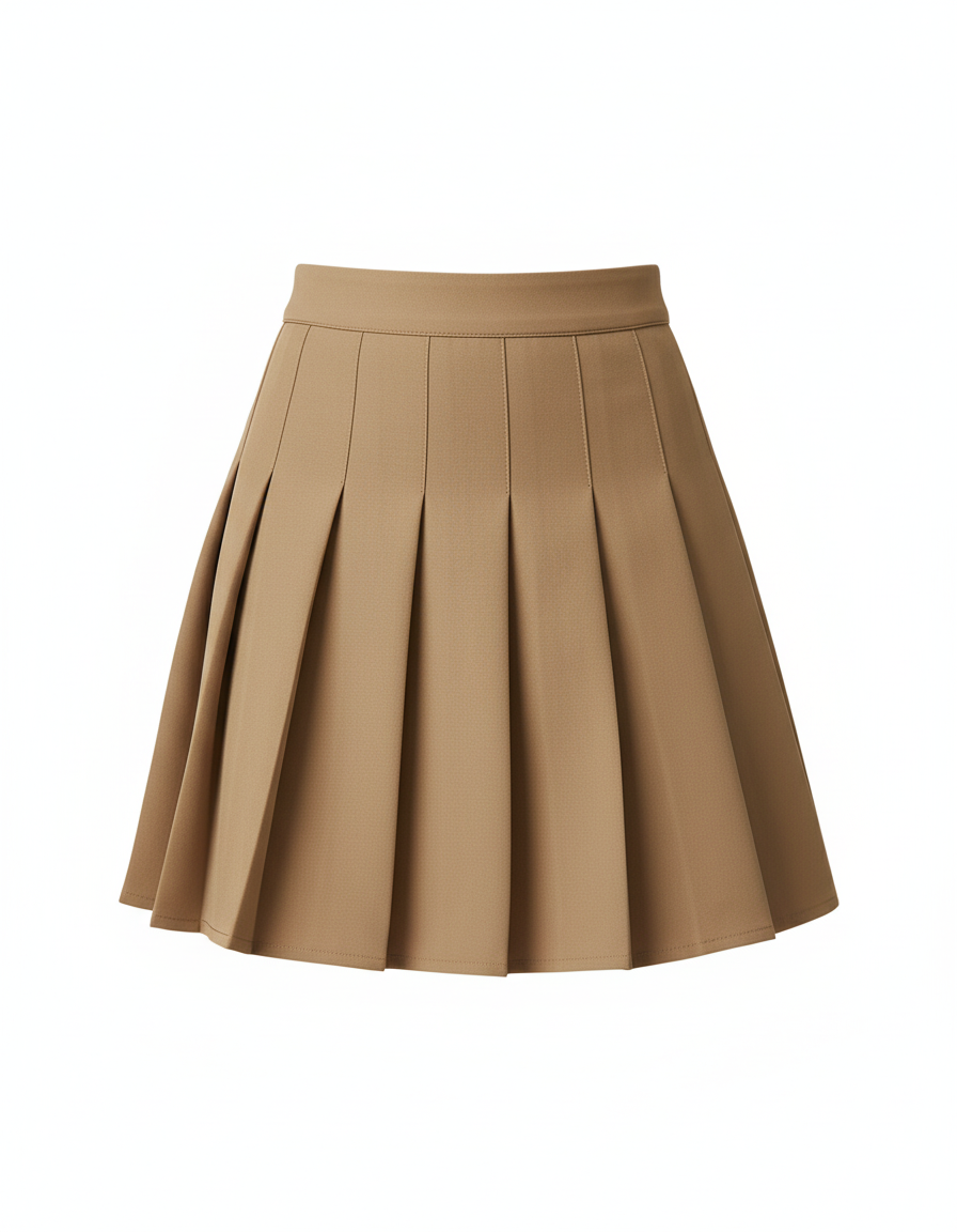 Jupe Patineuse Plissée Beige Preppy : L'Élégance Décontractée au Quotidien
