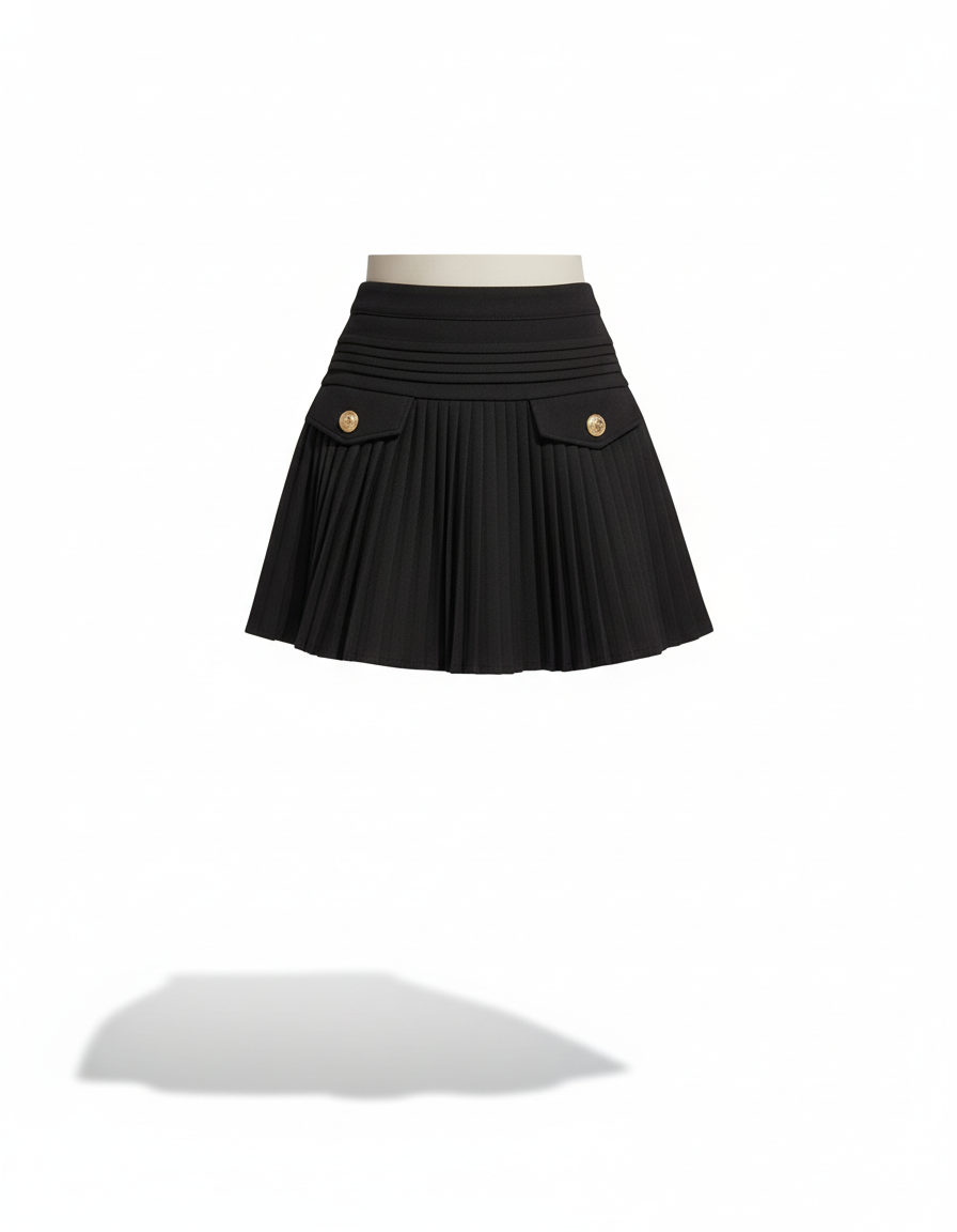Jupe Patineuse Plissée Boutons Dorés Élégante