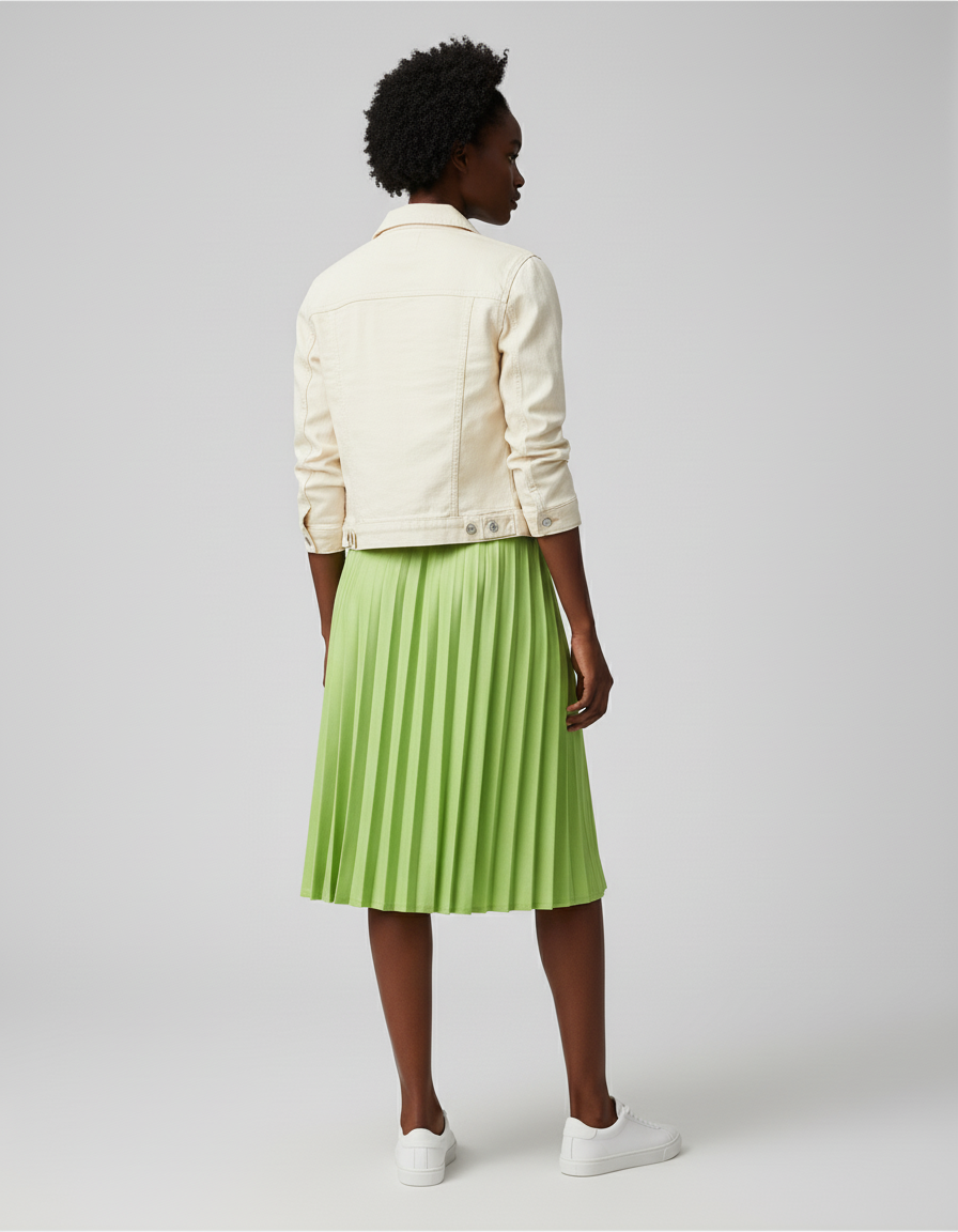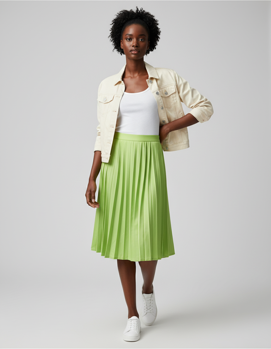 L'Élégance Décontractée de la Jupe Patineuse Plissée Fluide Verte