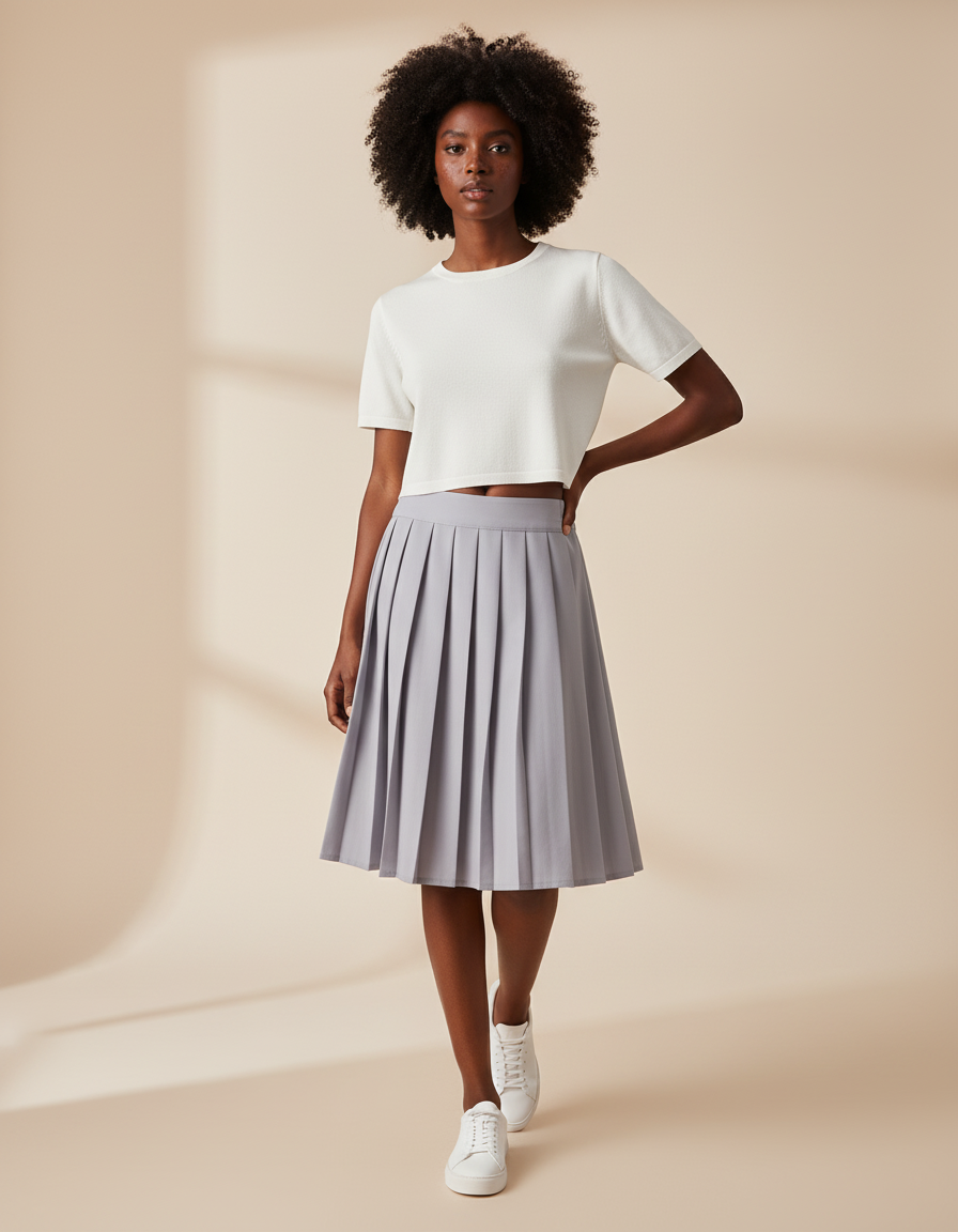 Jupe Patineuse Plissée Grise : L'Élégance Sans Effort au Quotidien