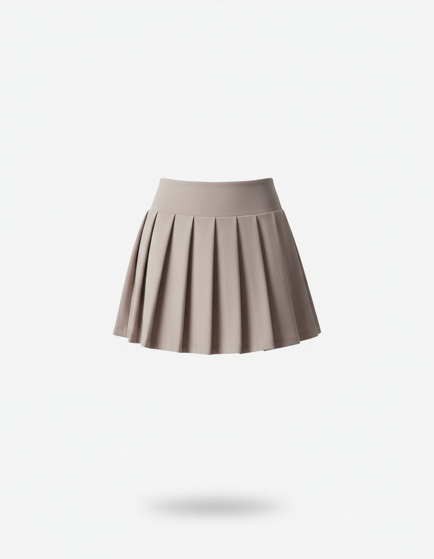 Adoptez l'élégance décontractée avec notre Jupe Patineuse Plissée Taille Haute, une pièce maîtresse pour un style quotidien raffiné. Sa teinte beige intemporelle se prête à une infinité d'associations. Pour un look urbain chic, mariez-la avec un débardeur ajusté et des baskets blanches, comme le modèle. En soirée, transformez-la avec une blouse soyeuse et des sandales à talons. Elle s'adapte aussi parfaitement aux journées actives, associée à un crop top et une veste légère, incarnant la polyvalence sans effort d'une garde-robe premium.