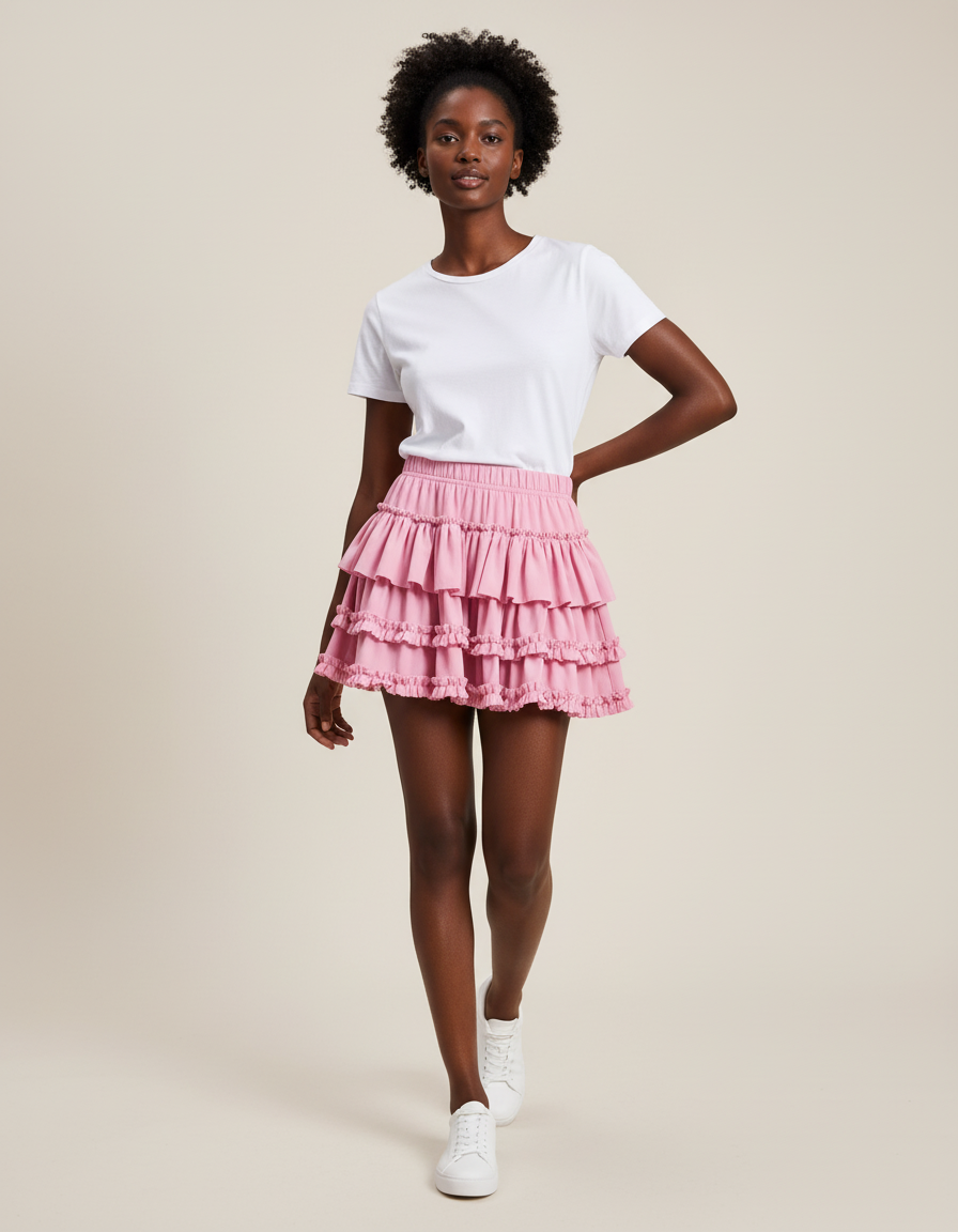 Jupe Patineuse Rose À Volants Fluide : L'Élégance Romantique Réinventée