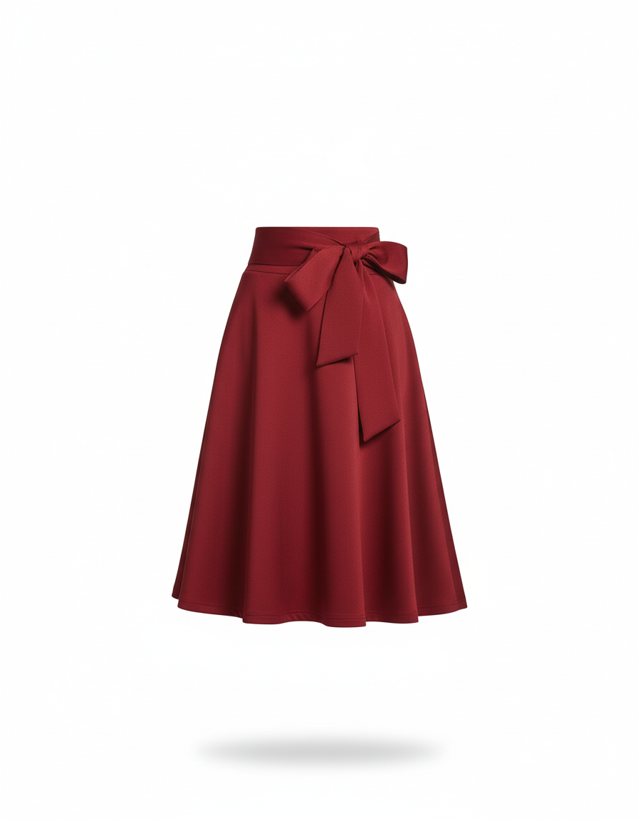 Jupe Patineuse Rouge Bordeaux à Ceinture Nouée