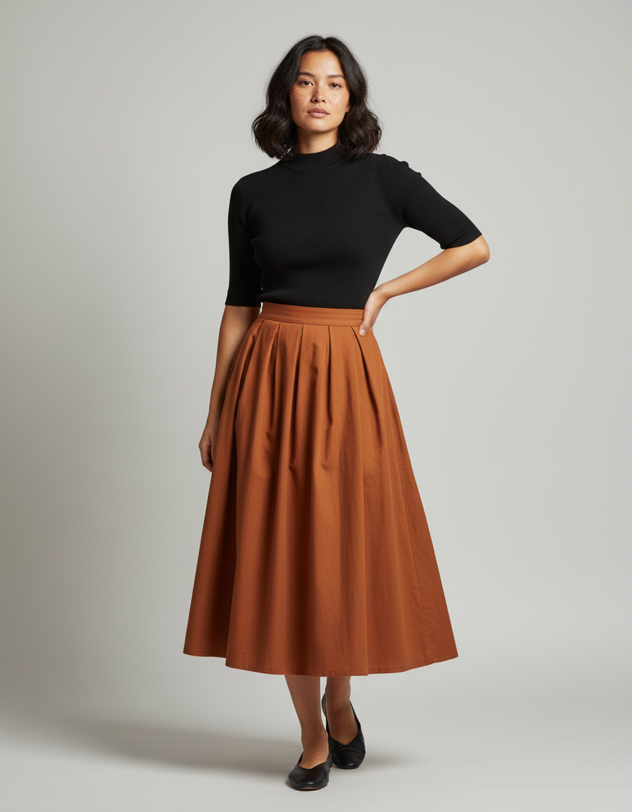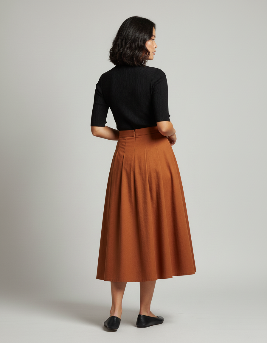 Élégance Quotidienne Réinventée : La Jupe Patineuse Rouille Plissée