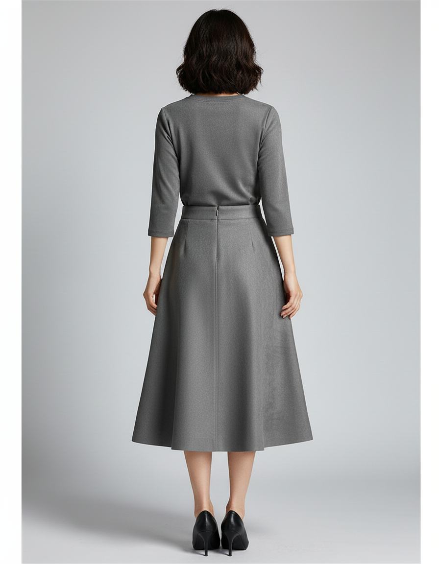 Découvrez notre Jupe Patineuse Suedine, une pièce maîtresse qui allie la douceur luxueuse du simili cuir suédé à une coupe intemporelle. Sa teinte grise, d'une élégance rare, confère une allure résolument sophistiquée, idéale pour le milieu professionnel. Conçue pour épouser les mouvements avec grâce, elle offre un confort inégalé tout au long de votre journée. Son tombé parfait et sa matière souple garantissent une silhouette flatteuse et une liberté de mouvement absolue, vous permettant de passer de réunion en réunion avec aisance et confiance, sans jamais sacrifier votre style.