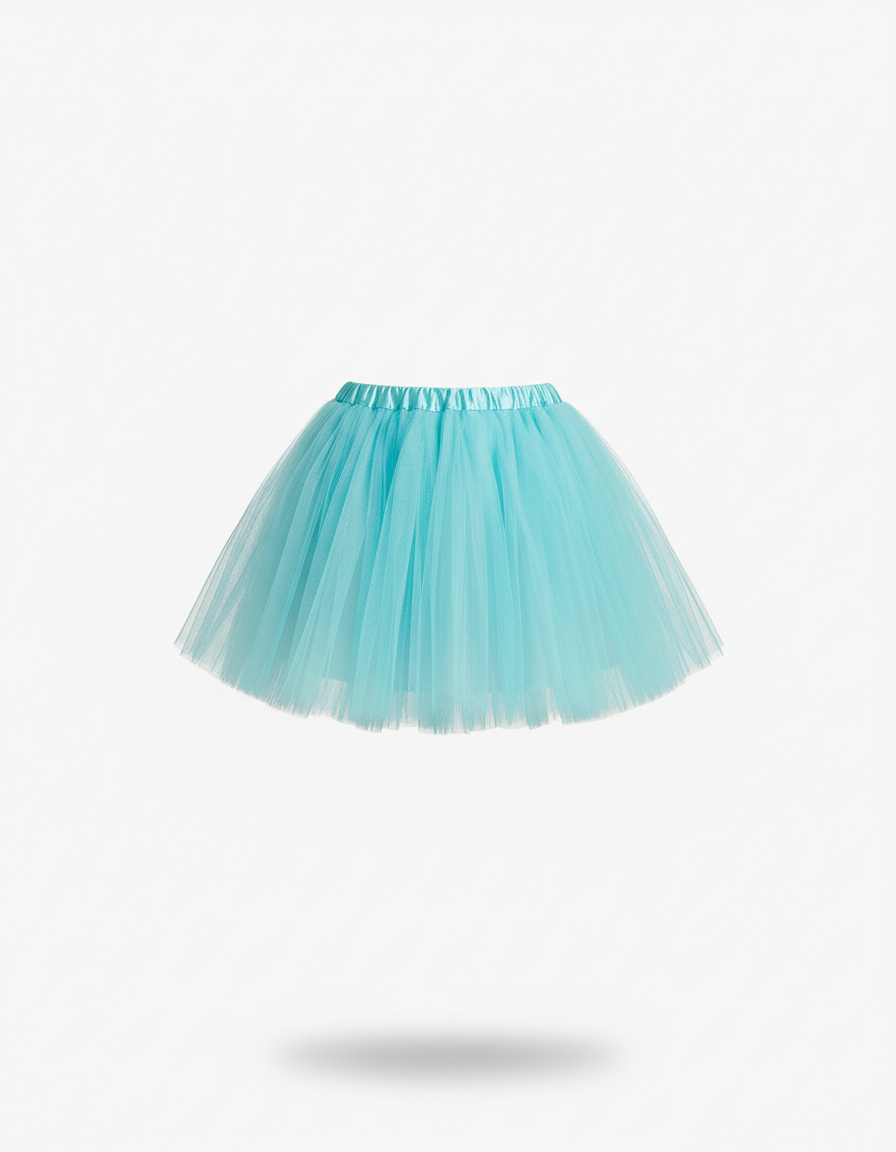 Adoptez un look frais et léger avec notre jupe patineuse en tulle bleu ciel.