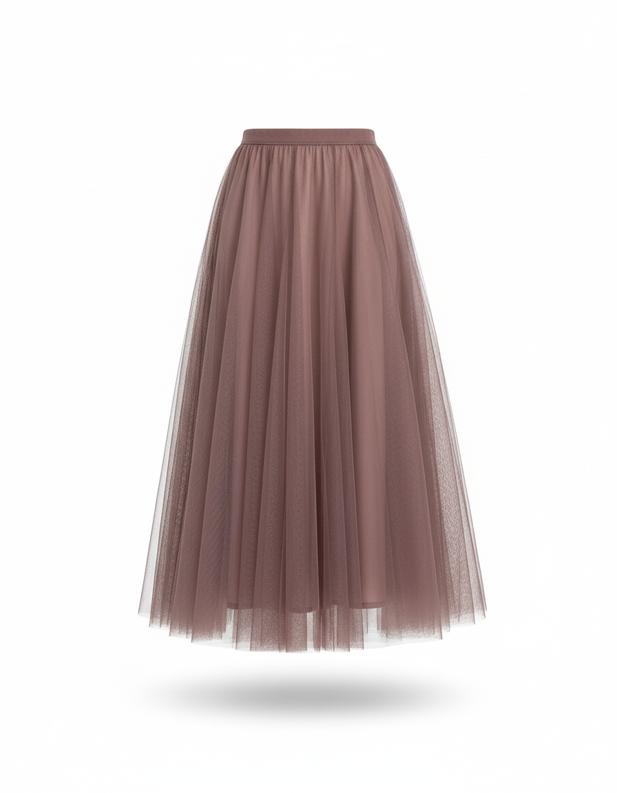 Adoptez un style raffiné avec notre jupe patineuse en tulle rose poudré, parfaite pour toutes les occasions.
