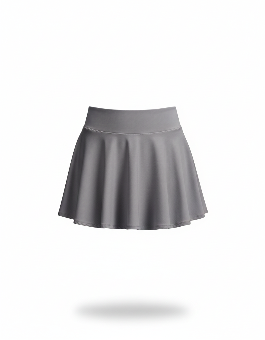 Cette Jupe Patineuse Xs est un modèle uni de couleur grise, caractérisé par une taille haute et une coupe évasée. Elle est confectionnée en polyester.