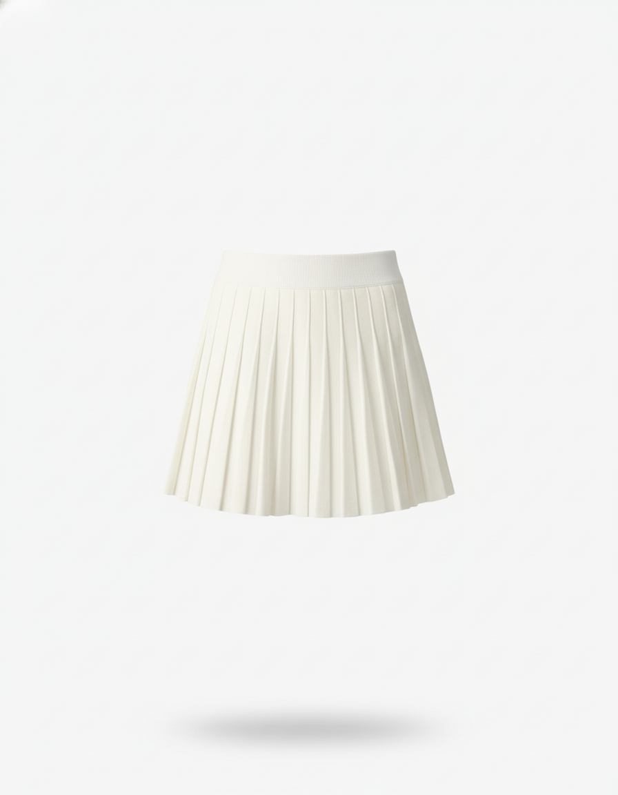 Cette jupe courte blanche présente un design plissé de style patineuse.